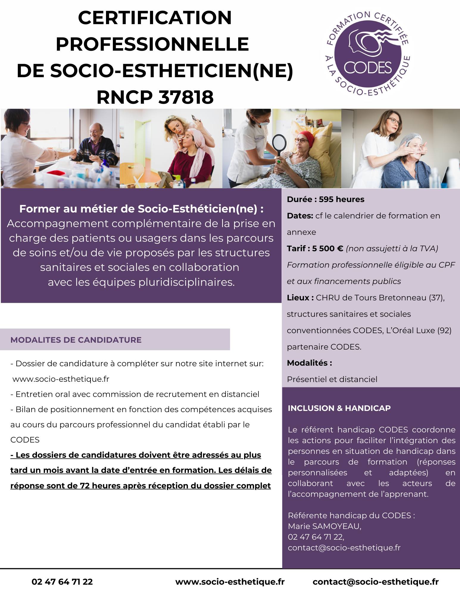 Le CODES délivre la certification professionnelle de Socio-Esthéticien(ne) reconnue par l’Etat.