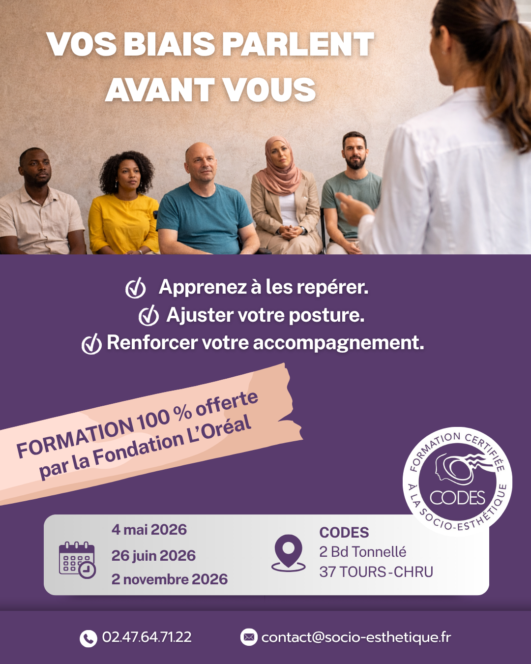 Depuis 45 ans, le CODES propose une formation pionnière et certifiée en Socio-Esthétique.